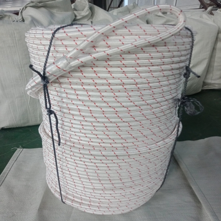 扬州瑞光生产的迪尼玛牵引绳主要用于电力线路施工以及桥梁、矿井等施工场景,它的材质为超高分子量聚乙烯纤维 ,重量轻,强度高,抗弯曲、抗疲劳、耐磨损。 绳芯是牵引绳的主要组成部分,由十二股超高分子量聚乙烯纤维编织而成,牵引绳在使用过程中承受的拉力都是由绳芯完成。绳芯的外面,需要编织一层或双层护套,材质为高强涤纶,增加牵引绳的耐磨性,延长牵引绳使用寿命,通常选用白色夹红色,展现牵引绳的外观美感。